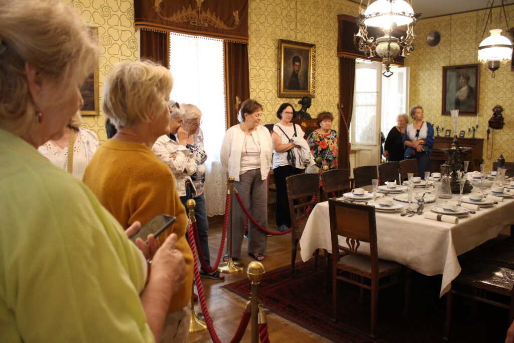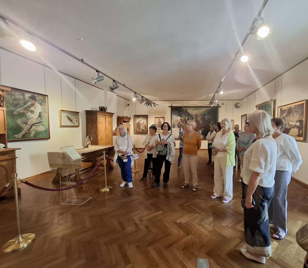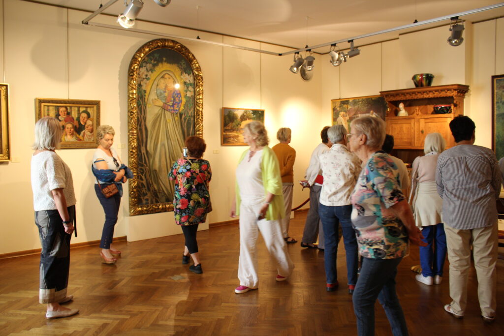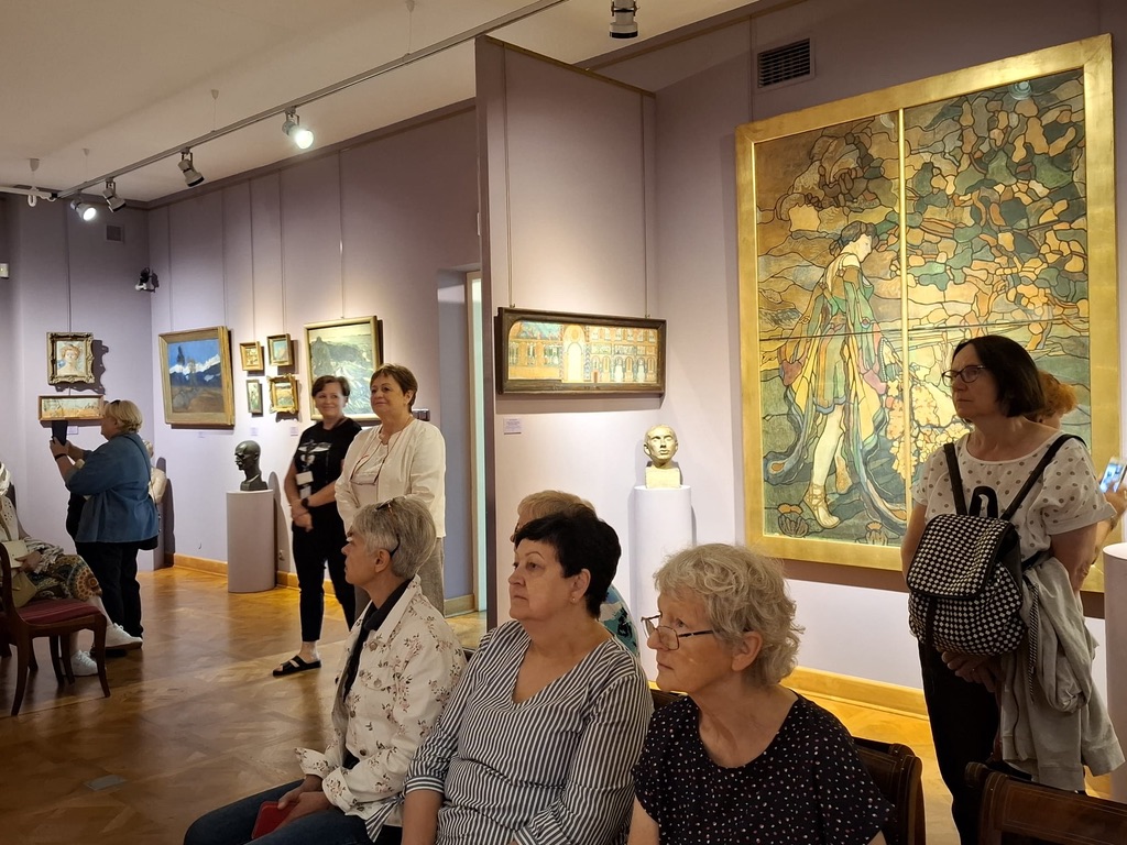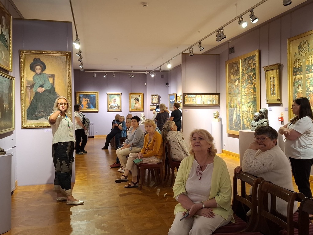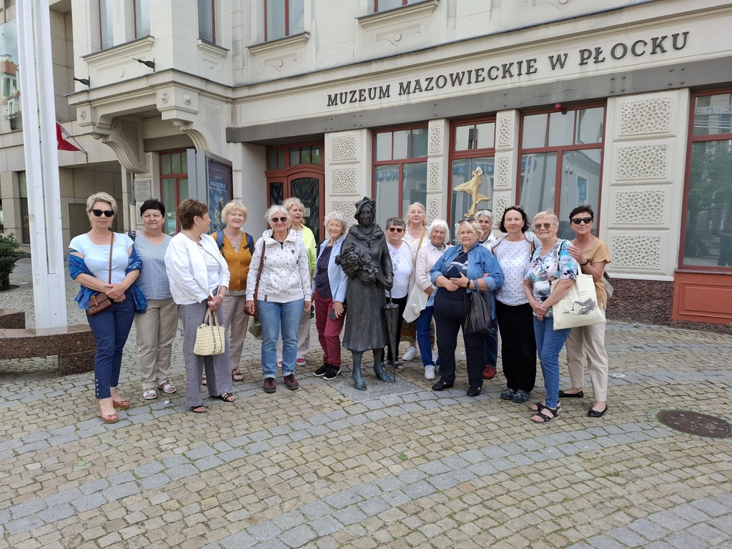 Uczestniczki letniego pleneru tkackiego w ECK w Sannikach zaplanowały w dniu 14.06.2024 r. wspólny wyjazd do Muzeum Mazowieckiego w Płocku. Głównym celem wycieczki było obejrzenie stałej wystawy pt. Secesja” w kamienicy przy Tumskiej 8. Interesowała nas artystyczna strona ekspozycji, zaciekawiły nas niezmiernie piękne eksponaty wystawiennicze w odniesieniu do wnętrz: meble ustawione zgodnie z panującymi w epoce zasadami i rzemiosło artystyczne: szkło, metal, ceramika. Zachwyciły nas formą i kolorem także oryginalne witraże, będące kultowa formą twórczości tego okresu w kulturze.